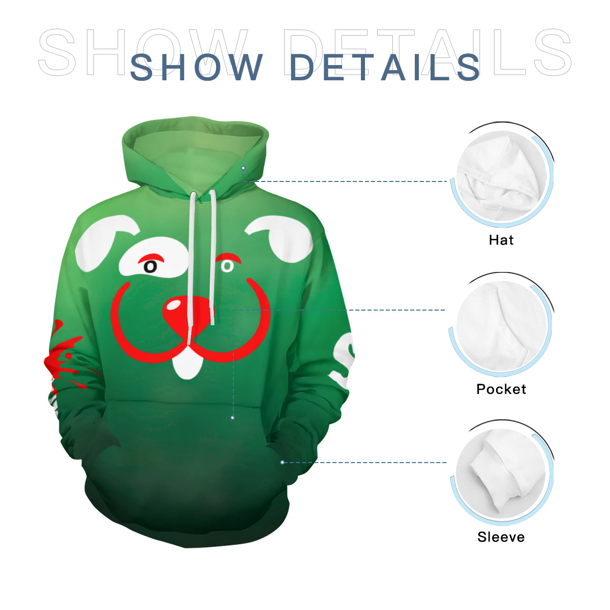 · Kangaroo front pocket design for convenient storage of small daily items.
