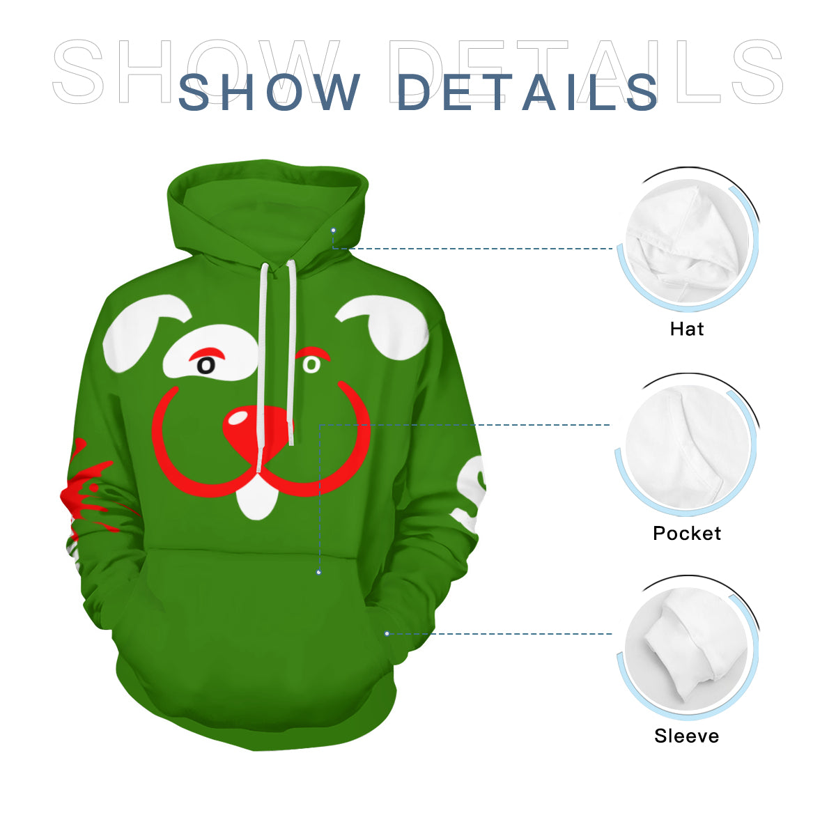 · Kangaroo front pocket design for convenient storage of small daily items.