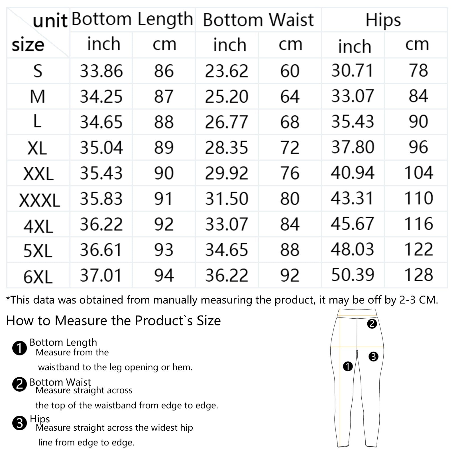 The measurement data of this size is obtained by laying clothes flat. Due to different measurement methods, it is normal that the error is within 2-3cm.